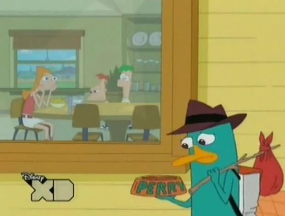 Fineasz: (ze smutną miną) Dzień dobry, Fretka. |