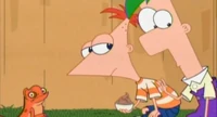 - Kiedy Fineasz wita się po raz pierwszy ze kameleonem on i Ferb nie trzymają już łyżeczek, a pucharek Ferba z jogurtem znika.